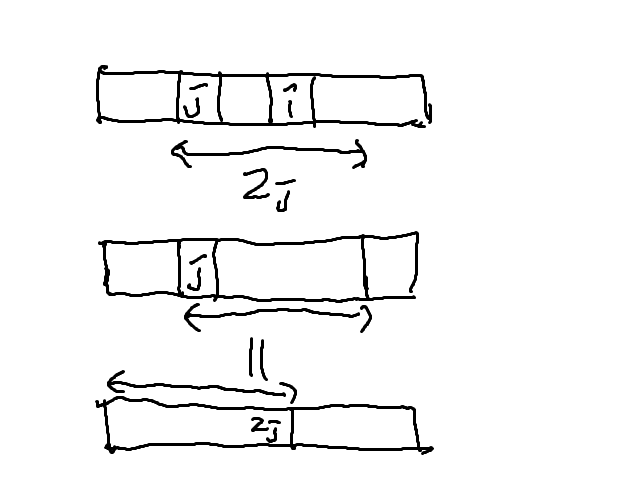 위에서 본 예시는 $i$에서 시작하는 최대 공통 접두사가 $j$에서 시작하는 최대 공통 접두사와 끝이 정확히 같은 경우였다. 그러나 실제로는 끝이 더 짧거나, 끝이 더 긴 경우도 있다. 각각의 경우에 대해서 간단히 생각해 보는 것이 좋을 것이다.