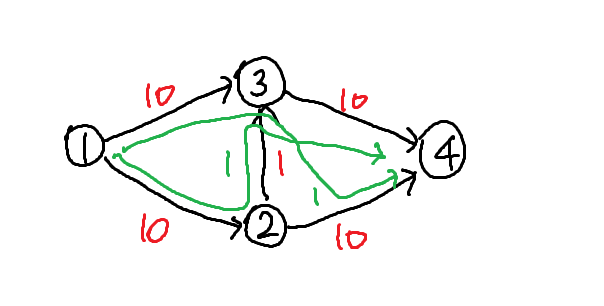 반면, 앞에서 문제가 되었던 아래와 같은 증가 경로도 있다. 이 증가 경로가 하는 역할이 무엇인가?