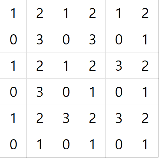 - $\min(x, y)$가 짝수인 경우, $x+y$가 짝수면 $0$, 홀수면 $1$,
