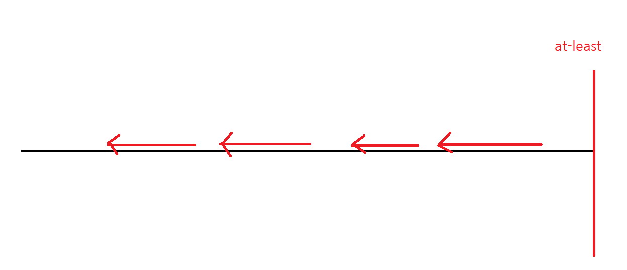 겹치는 구간들은 하나로 합쳐 주는 것이 항상 최적이라는 사실을 쉽게 보일 수 있습니다. 또 편의를 위해 $atleast$에 구간 $[atleast, atleast]$를 하나 더 만들어 주게 된다면, 아래와 같은 그림이 만들어집니다.